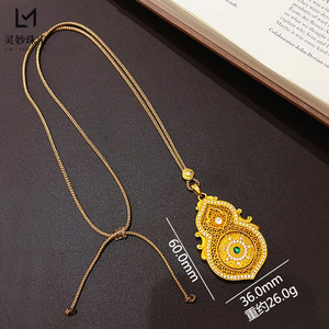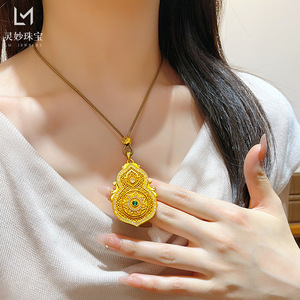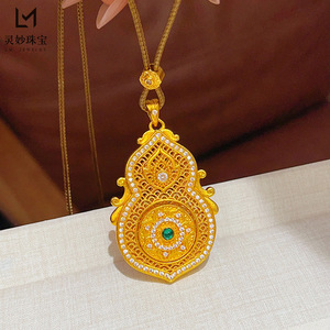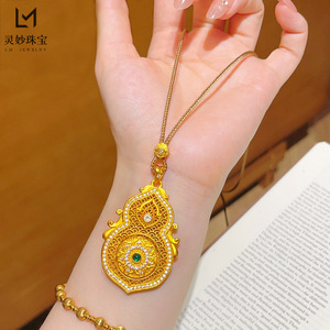 金店同款沙金绿钻人生四面葫芦吊坠项链可旋转莲花福禄挂坠国风女