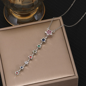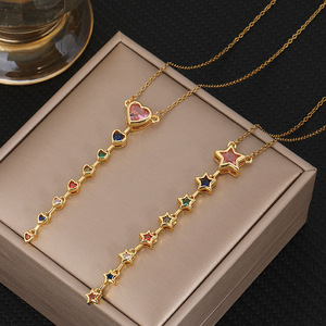 轻奢高级感闪钻大小五角星流苏吊坠项链气质精致爱心锁骨链配饰品