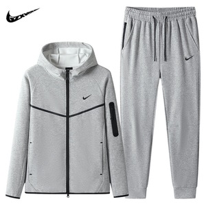 跨境男装2025秋季休闲运动套装男连帽开衫长袖长裤户外跑步两件套