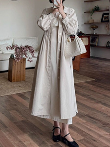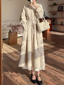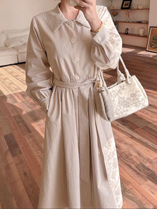 秋季新款舒芙蕾娃娃领腰带英伦风气质长款外套