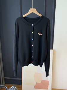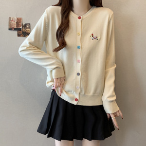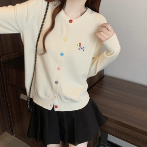 早秋新款慵懒风小狗刺绣针织开衫女韩系彩色纽扣设计感毛衣外套