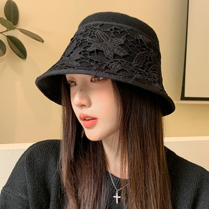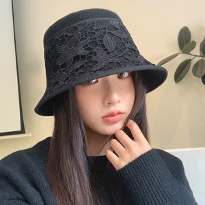 日系复古镂空印花渔夫帽秋冬新款防风显脸小盆帽户外休闲保暖帽潮