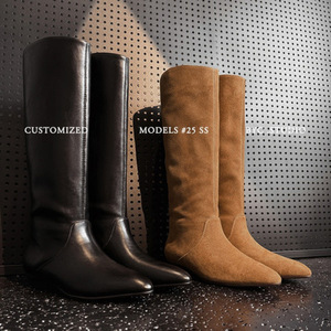 女士洋气高级感时尚2025尖头粗跟低跟高筒长靴子不过膝显瘦时装靴