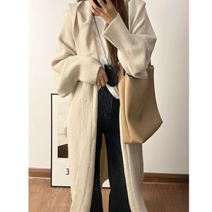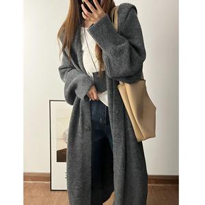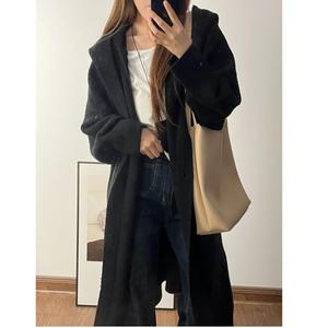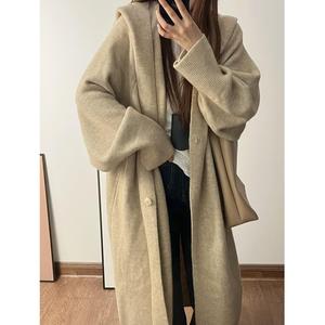 2025新款秋季慵懒风长款毛衣开衫外套蝙蝠袖女连帽宽松韩版大衣