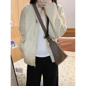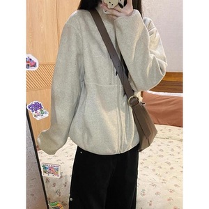 新款秋季新款外套女美式复古宽松休闲百搭立领夹克卫衣开衫