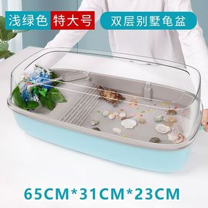 乌龟缸自动换水家用懒人龟盆透明水陆两用龟盒专用别墅房子