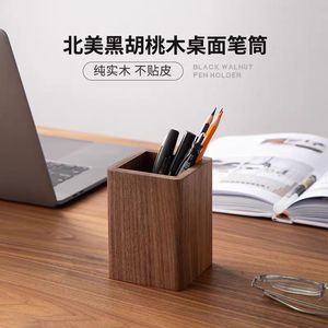 黑胡桃实木笔筒收纳创意桌面摆件北欧风格木质笔筒