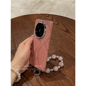 适用华为x6手机壳折叠屏新款x5中轴磁吸鎏银樱花粉蛇纹matex6轻奢