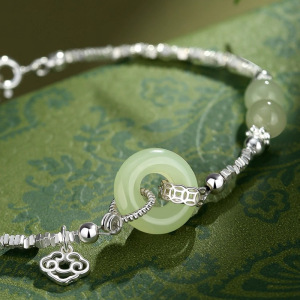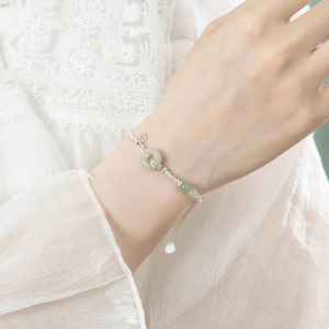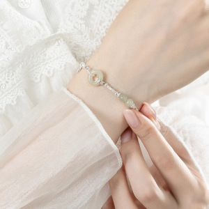 碎银子仿和田玉平安扣手链女轻奢小众新中式手饰温婉复古优雅饰品