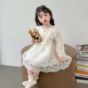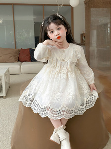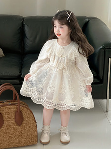 外贸女童2025年秋款新款荷叶边蕾丝裙一件代发童装韩版网红连衣裙