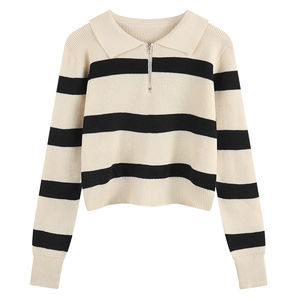 翻领拉链条纹长袖短款针织衫女秋冬季小个子外穿打底衫上衣毛衣女