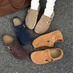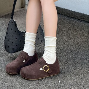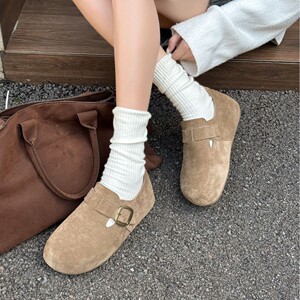2025秋季新款内增高真皮勃肯鞋复古牛皮单鞋平底吐司面包鞋