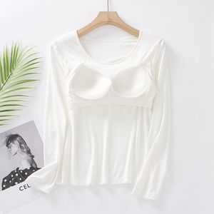 莫代尔长袖打底衫带胸垫一体式保暖内衣免穿文胸修身显瘦背心式女