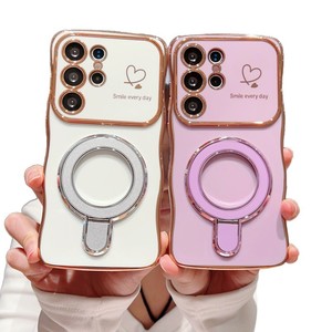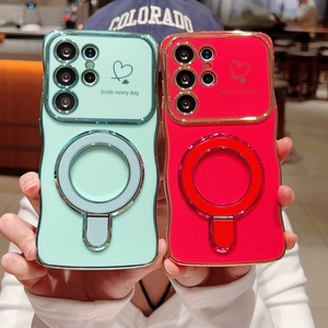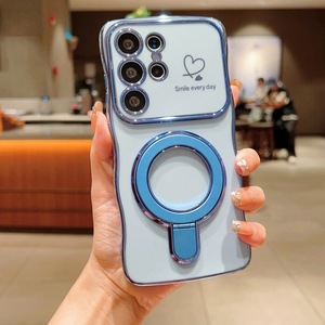 电镀爱心适用三星S25手机壳S24Ultra保护套S23波浪大视窗S22支架