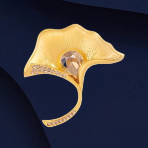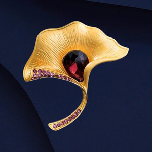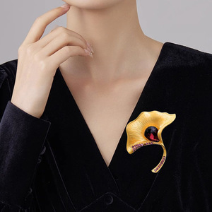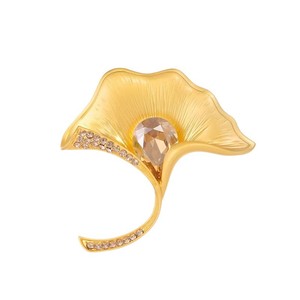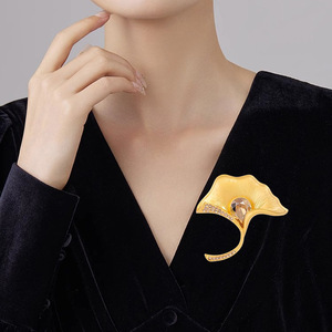 文艺复古银杏叶胸针女中古风水晶叶子胸花小众设计感别针西装配饰