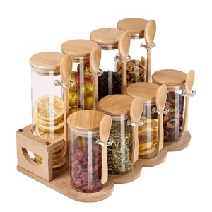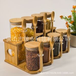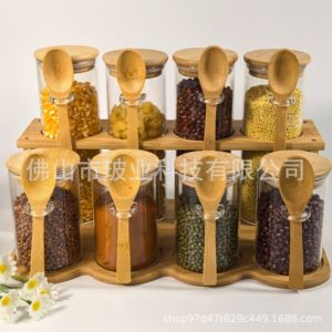 厨房收纳储藏调味品罐带竹架玻璃密封罐陈皮罐香料罐茶叶罐咖啡罐