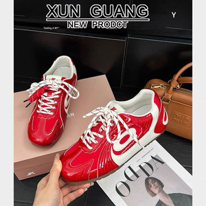 真皮复古百搭德训鞋女款2025秋季新款透气软底休闲运动赛车阿甘鞋