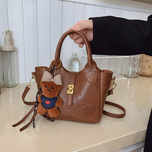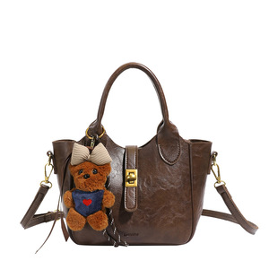 休闲单肩斜挎包简约新款时尚高级感手拎女包荔枝纹手提水桶包包女