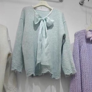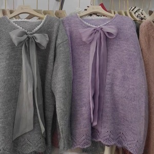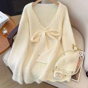 女装新款甜美慵懒风宽松遮肉显瘦蝴蝶结毛衣纯色2025洋气新款爆款