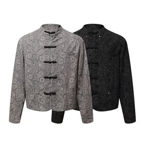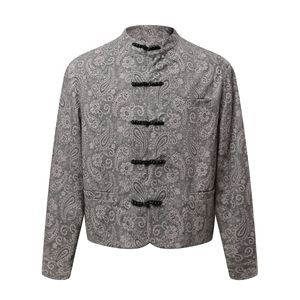 K621复古小众解构正肩中式腰果花图案设计男式短宽型cleanfit外套