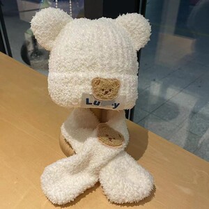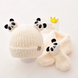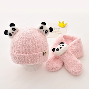 宝宝帽子熊猫儿童围巾帽秋冬超萌毛绒男女婴儿针织帽护耳套装帽子