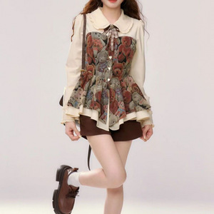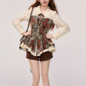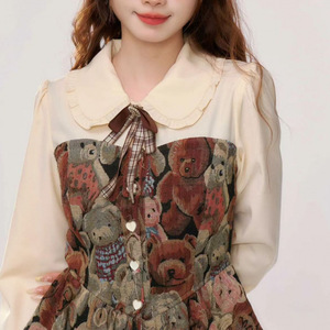 复古国风提花衬衫连衣裙女小个子早秋学院风套装