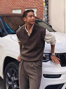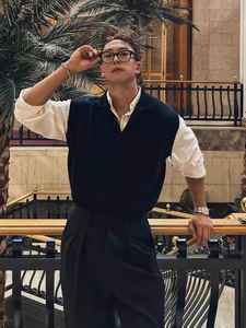 POLO领毛衣背心男春秋韩版复古轻熟风毛线衣轻奢商务休闲针织马甲