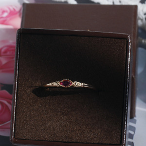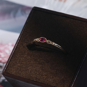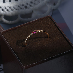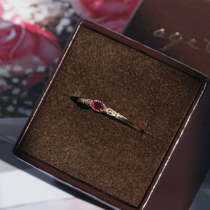 凰谨珠宝 日系agete简约复古人造红宝石马眼戒指新 925纯银镀真金