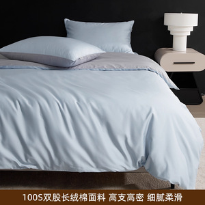 高端A类纯色100支双股长绒棉被套单件全棉纯棉贡缎被罩三件套单人