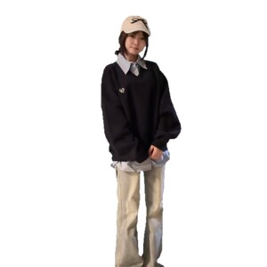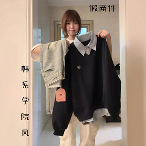 韩系学院风拼polo领长袖卫衣女春秋设计感宽松气质休闲百搭衣