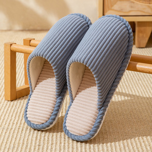 亚麻棉布薄款拖鞋家用加绒居家室内地板防滑厚四季通用男春秋情侣