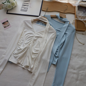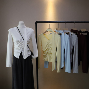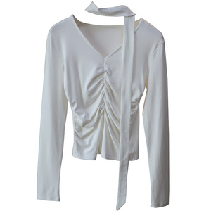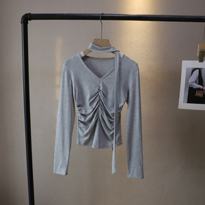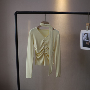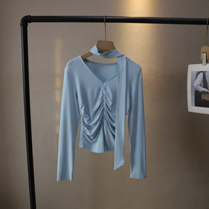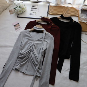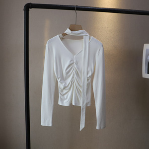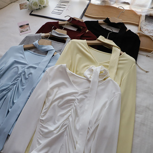 [比正]2025秋季新款韩版气质V领超好看修身长袖内搭打底T恤女4749