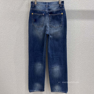 印花金属装饰牛仔裤女 复古洗水显瘦百搭高腰直筒长裤秋 ZK62953