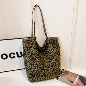 跨境豹纹帆布包包女2025新款大容量时尚休闲托特包通勤百搭单肩包