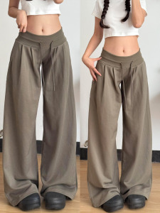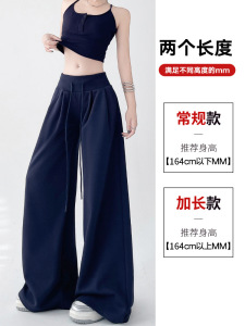 美式复古阔腿裤女夏季薄款2025新款宽松抽绳休闲裤慵懒垂感运动裤