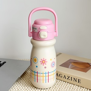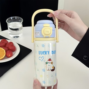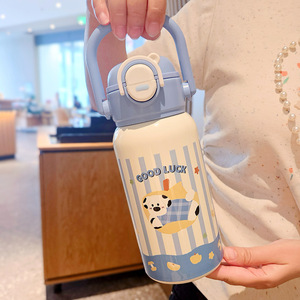 卡通萌趣316不锈钢儿童保温杯 大容量外出便携提手双饮弹跳水杯