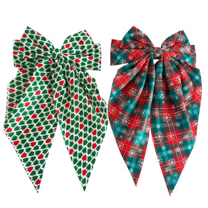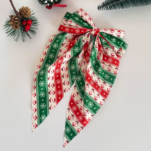 新款圣诞节发夹飘带蝴蝶结弹簧夹圣诞老人雪花图案节日氛围感发饰