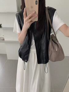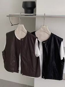 2025年秋款皮衣马甲女宽松休闲韩版开衫无袖蛋白马夹时尚减龄坎肩