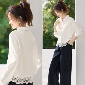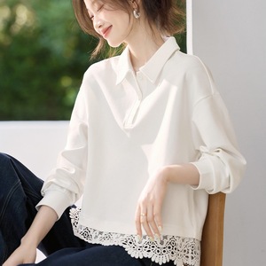 城市轻生活25秋季款蕾丝拼接短款翻领百搭通勤上衣卫衣