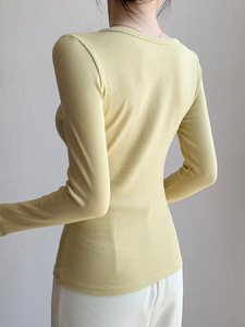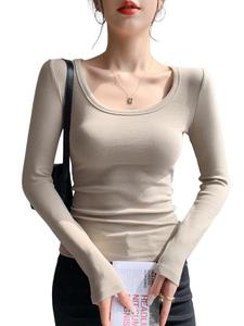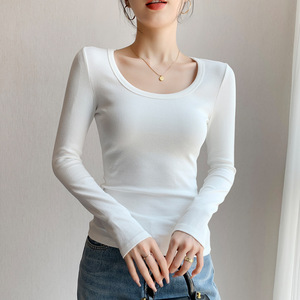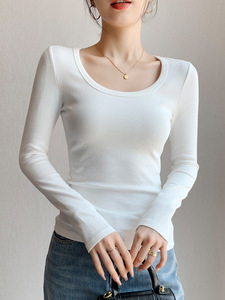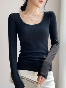 2025秋季打底衫女大衣内搭U领长袖修身纯棉大领口螺纹上衣新爆款
