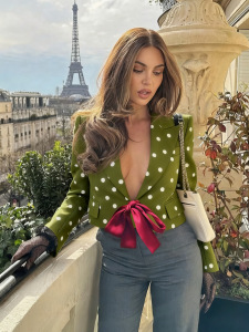 现货亚马逊跨境外贸秋冬系带蝴蝶结修身女时尚气质新短款西装外套