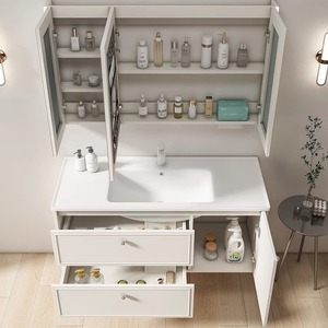 100CM-感应美妆镜柜款+陶瓷一体盆