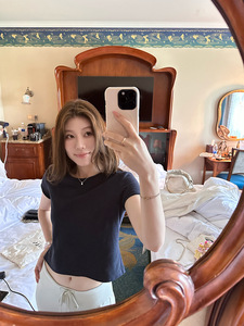 蝶宝嘻 比例天菜 1oo纯棉正肩卷边T恤女2025夏季新款显瘦短袖上衣