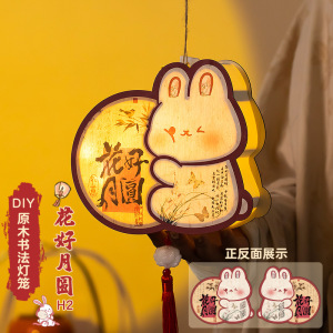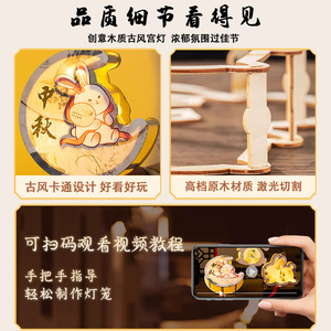 中秋节灯笼儿童手提古风木质兔子花灯手工diy材料幼儿园活动布置