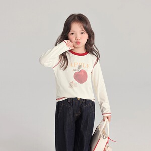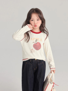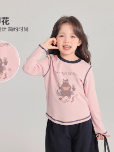 春秋季新款纯棉高品质秋装女童长袖儿童卡通撞色圆领T恤内搭上衣