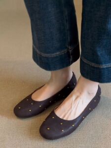 羊皮2025满钻蝴蝶结玛丽珍单鞋水钻平底芭蕾舞鞋女皮带扣铆钉单鞋