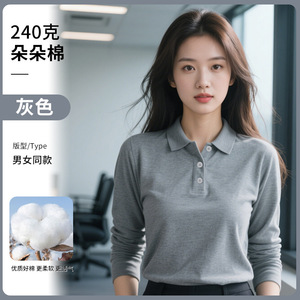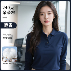 大疆乐道秋季长袖纯棉polo衫工作服定制logo工装企业团体橘色工服