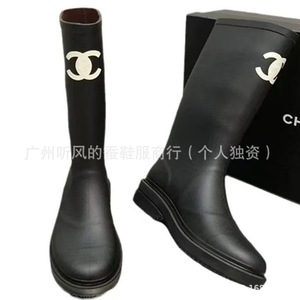 时尚小香风不过膝长靴女中长筒骑士靴厚底黑色高筒中古风橡胶雨靴