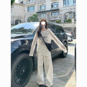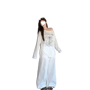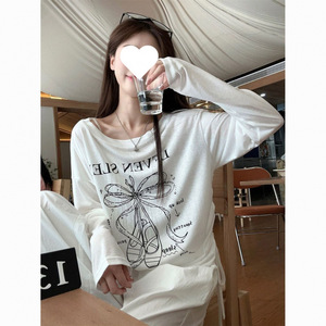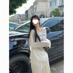 白色印花冰丝防晒长袖恤女夏季宽松外搭薄款微透抽绳罩衫上衣潮包