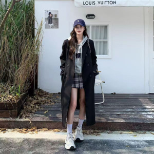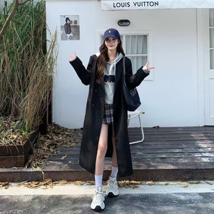 黑色风衣春秋长款2025大衣学院赫本中长款宽松小个子外套休闲百搭